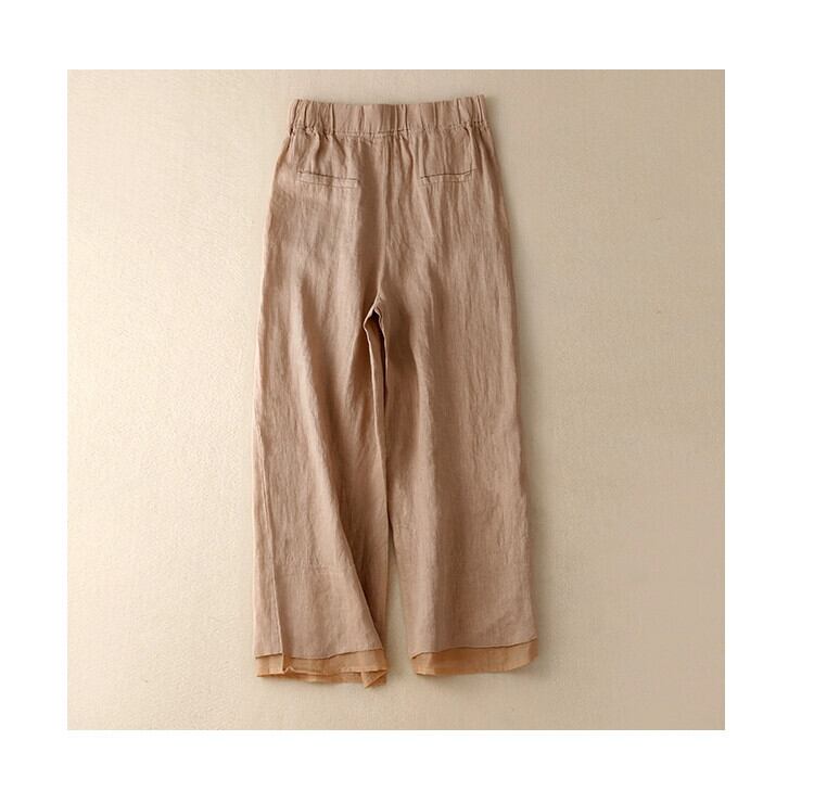 クリアランス漏れ~eign tradeビッグブランドカットレーベルレディースレトロコットンリネンワイドレッグパンツハイウエストストレートカジュアルリネン9点パンツ sine57553654980