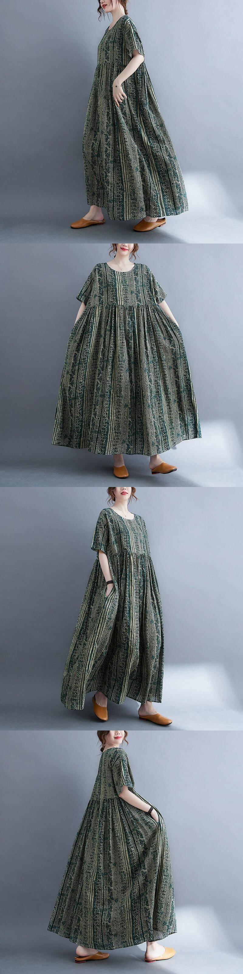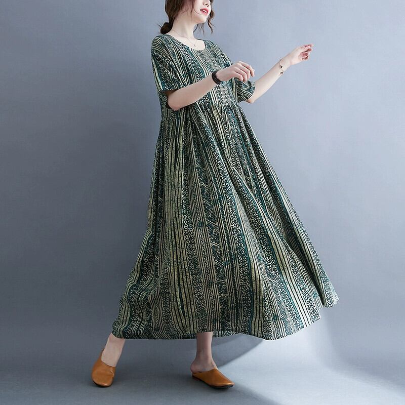 レトロな文学半袖ドレス、ゆったりとしたプラスサイズの女性のファットシスタープリント、肌を覆う膝丈のリネンローブ 大きめサイズ sine11517760908