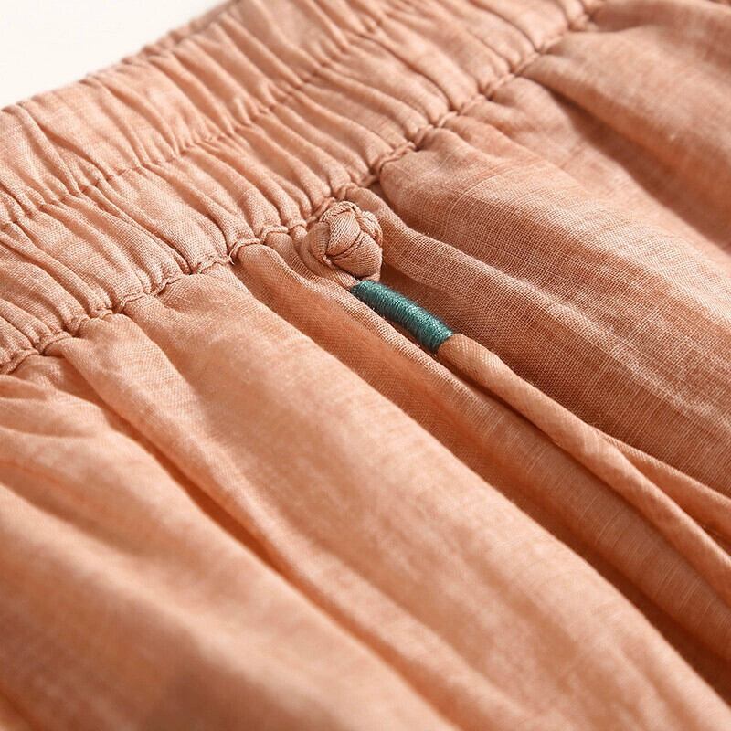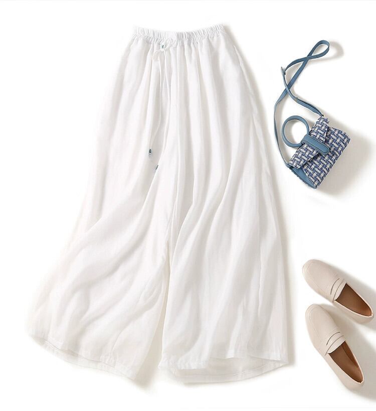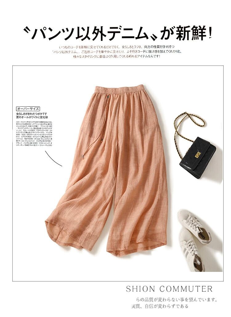 Eign Trade Export Big Single Women's Cotton and Linen Straight Leg 9-point Pants with Cut-off Tail, ゆったりとしたハイウエストのラミー二層薄手ワイドレッグパンツ コットン sine42430100986