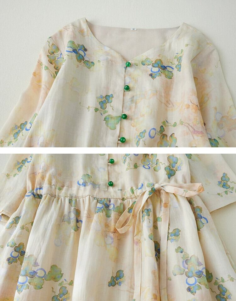 イタリア eign trade ビッグブランドテールグッズカットラベル女性のラミー改良チャイナロングスカートプリント大きな裾コットンリネンドレス sine72650312422