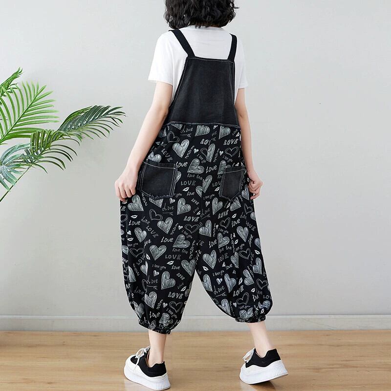 デニムオーバーオール女性の夏 2022 ルーズ大きいサイズプリントスプライシング腹カバーだらしないパンツ股パンツ 大きめサイズ サマー 夏物 sine99888335684