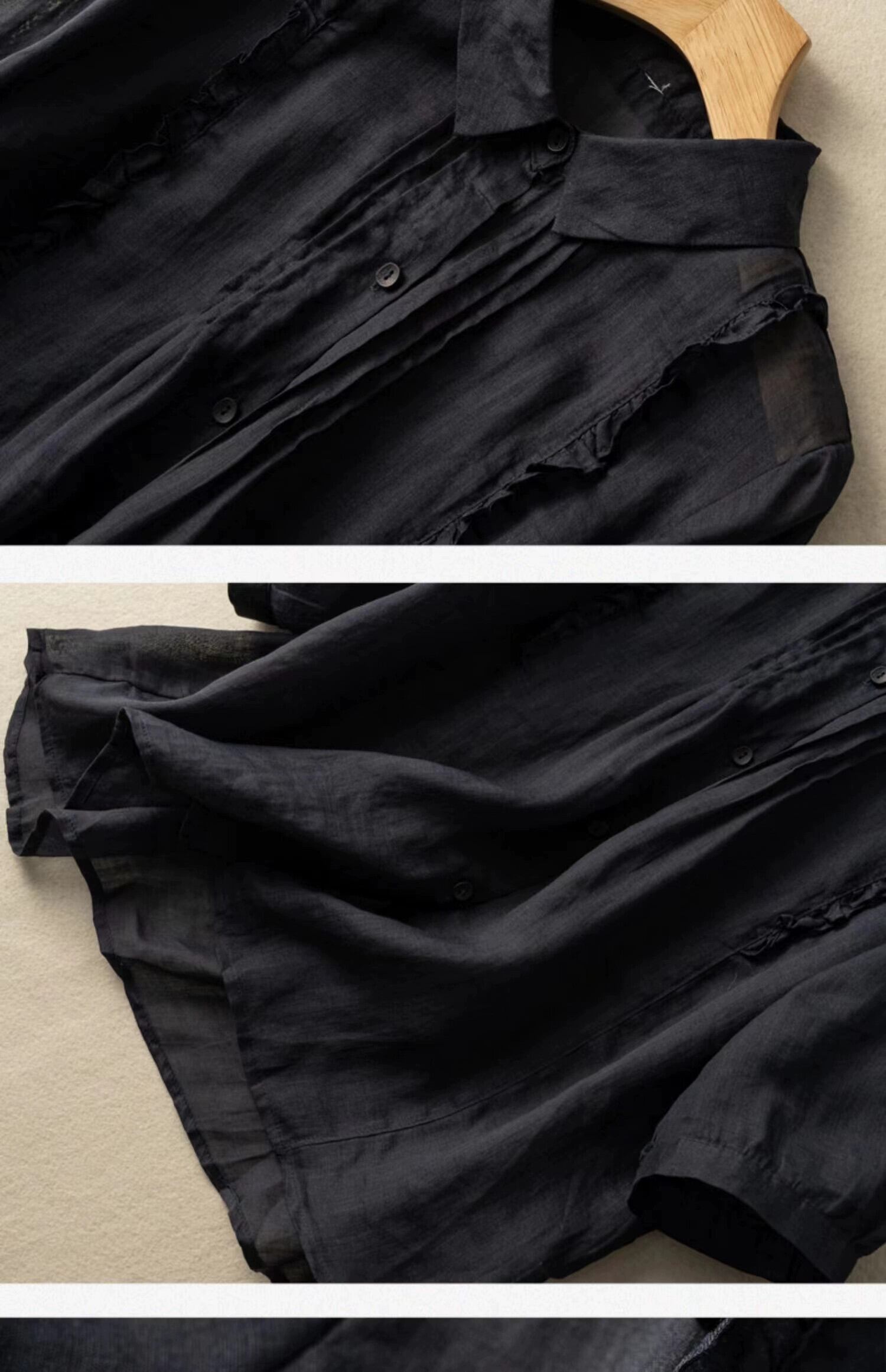 クリアランス クリアランス カウンター 牛グッズ 撤去 レディース レトロ レース ラミー ラペル シャツ ルーズ 七分袖 コットン リネン トップス sine30423236377