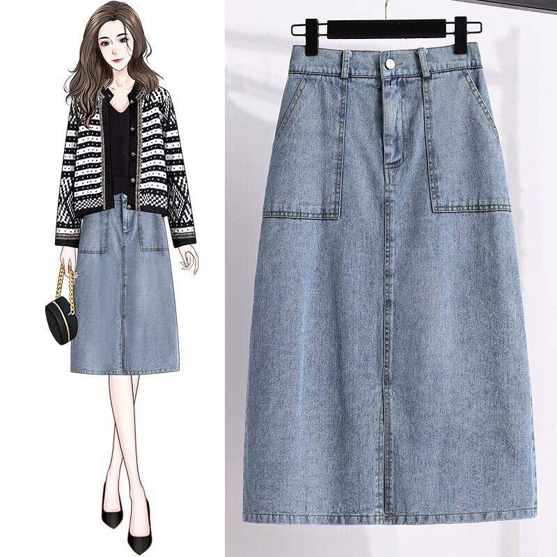 クリアランスブランド カウンターエンド品 レディース ウォッシュドカジュアル デニムスカート 大きいサイズ レトロ ハイウエスト スリット Aラインスカート ハイウェスト 大きめサイズ sine44314691034