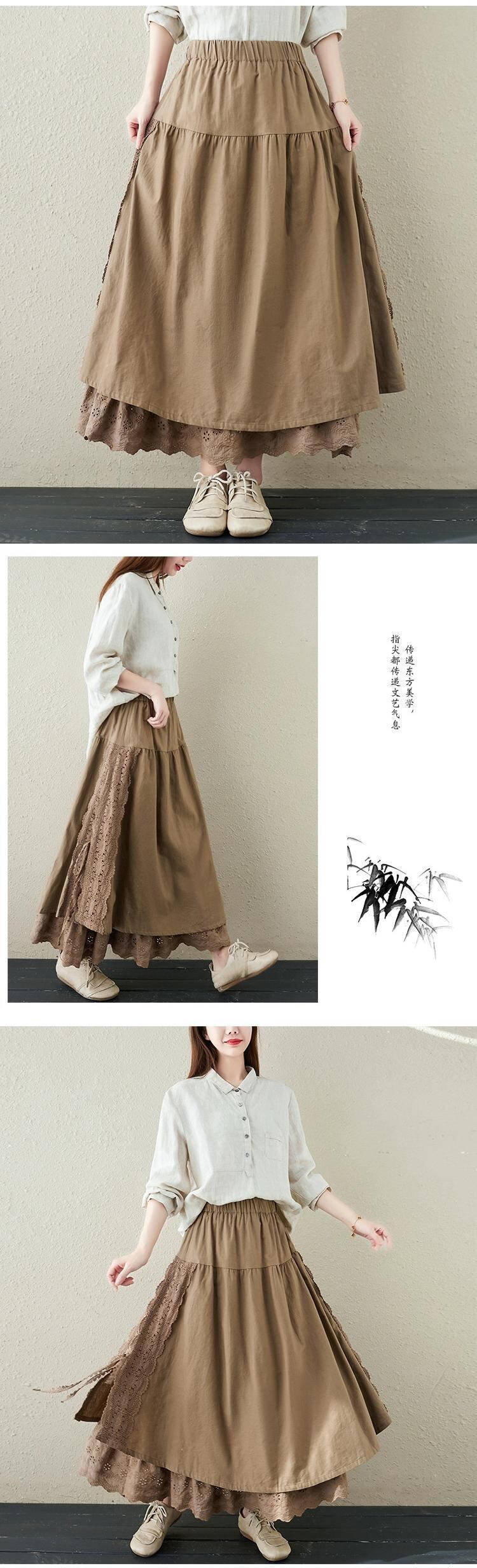 永貿易輸出尾品撤退レディースレトロ刺繍レース綿麻スカート大きいサイズハイウエストラミーロングスカート ハイウェスト レッド コットン 大きめサイズ sine44189603205