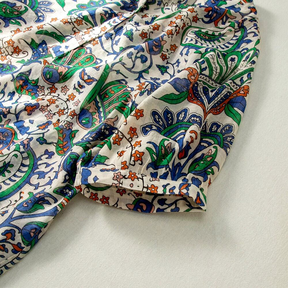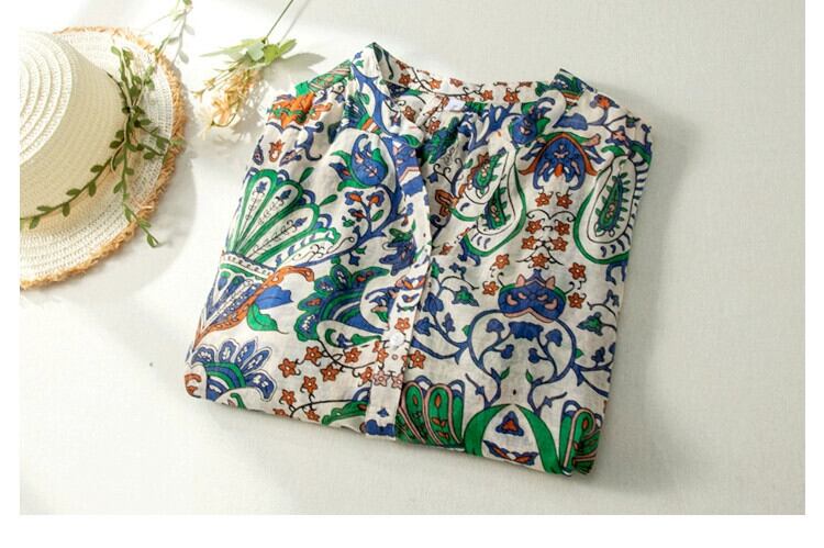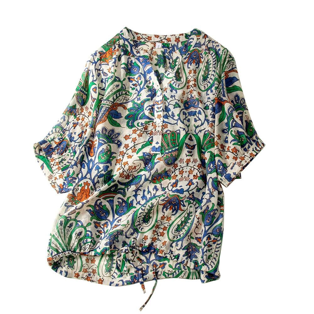 ディスカウント ストア ショッピング モール削除エスニック スタイル プリント半袖シャツ女性の夏ルーズ通気性綿とリネンのシャツ トップ コットン サマー 夏物 sine81981232088