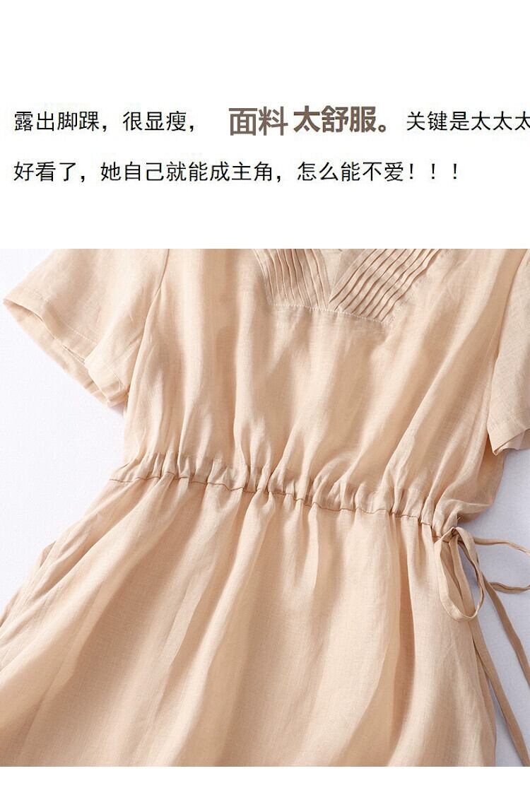 ディスカウント ストア ショッピング モールの女性の ese スタイルのウエストネクタイ リネン ドレス ルーズ コットンとリネンの半袖スカート sine50289700785