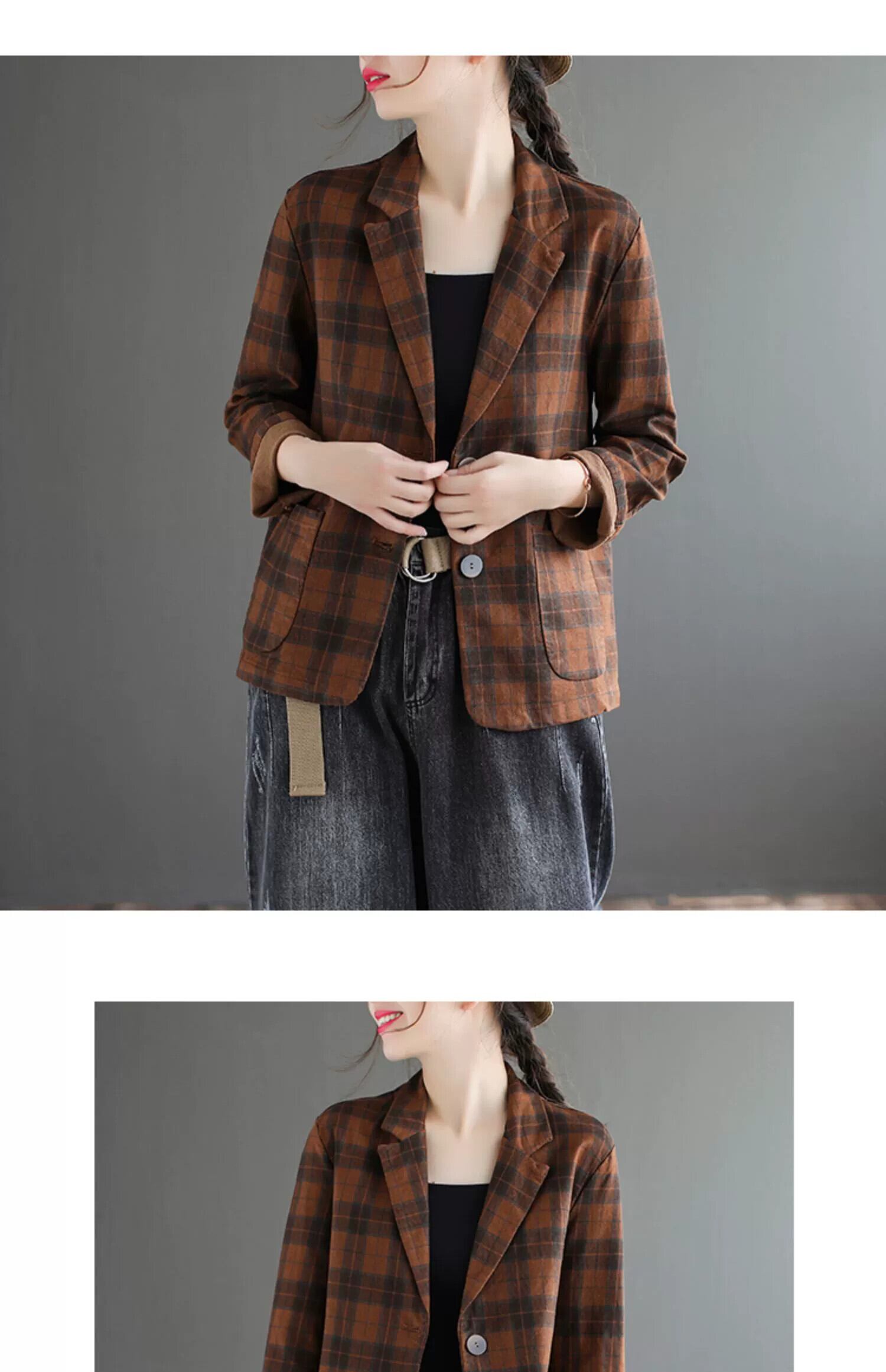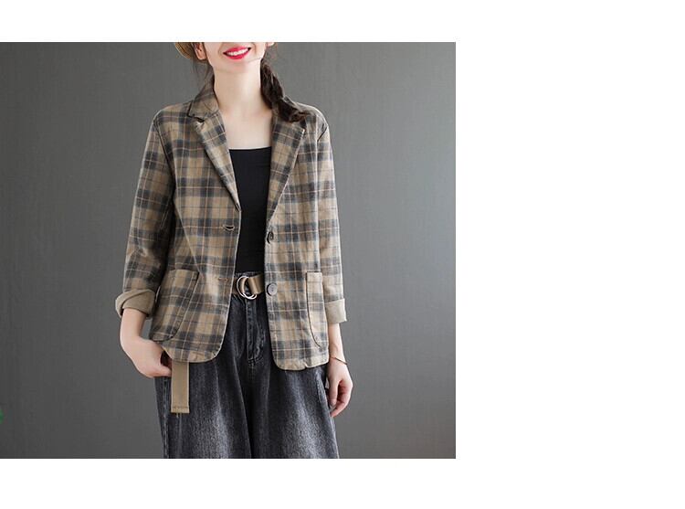 第一線のブランド eign trade 最後の在庫の女性のレトロなチェック柄の綿とリネンのスーツ大きいサイズのカジュアルなラミー長袖ジャケット ロング コットン 大きめサイズ sine25564179260