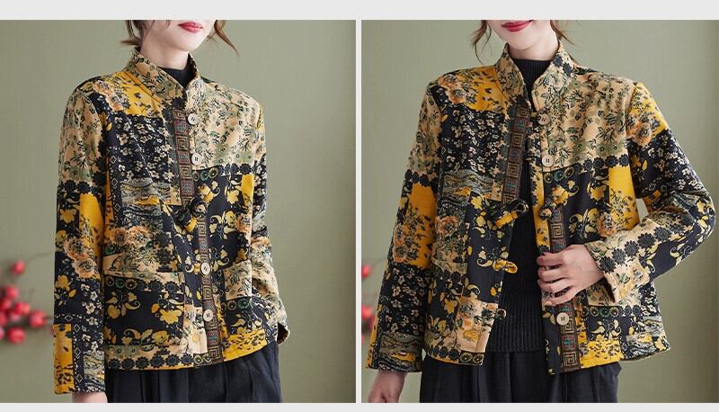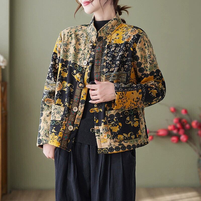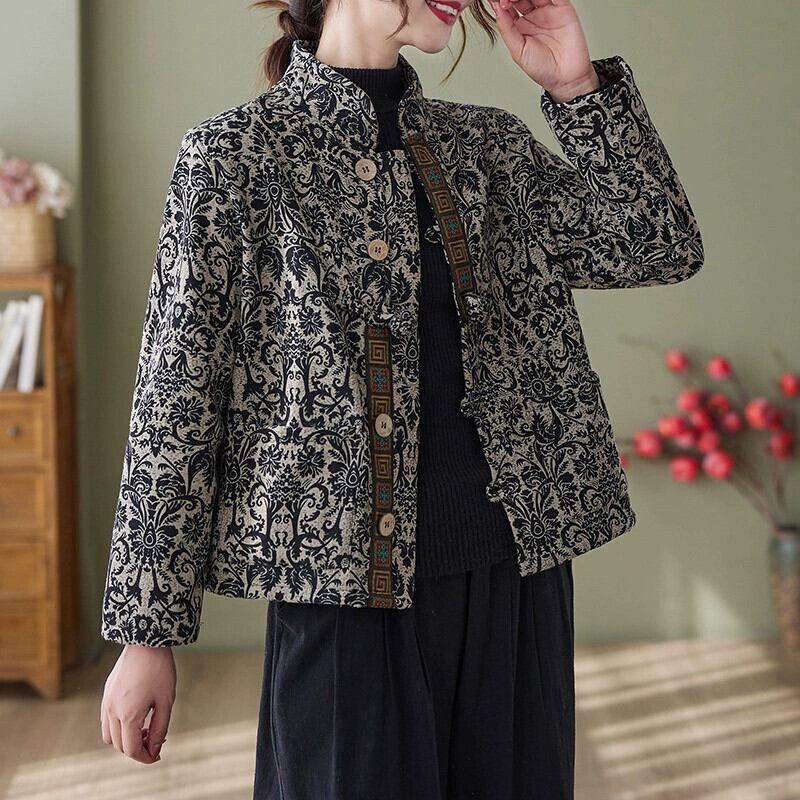 ese とオリジナルの eign trade の有名な女性の厚くて暖かいレトロなプリントの綿入りジャケット、ルーズなスタンドアップカラーとベルベットの綿入りジャケット コットン sine33018459684