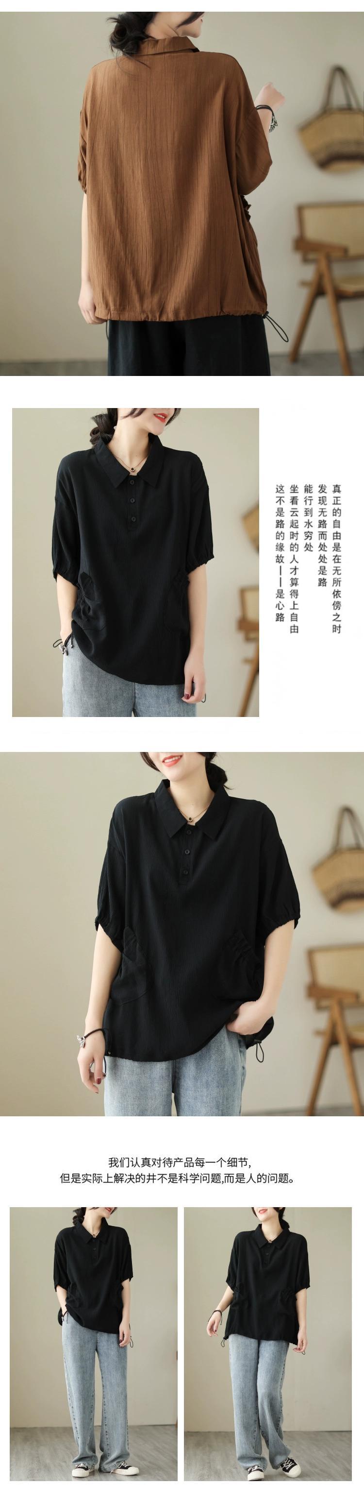 クリアランスリーク〜eseオリジナル夏新レトロ巾着コットンとリネン半袖Tシャツレディースカジュアル七分袖トップ サマー 夏物 sine67001410952