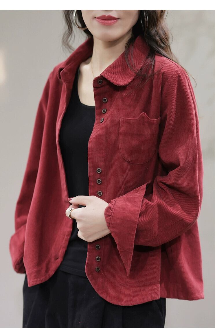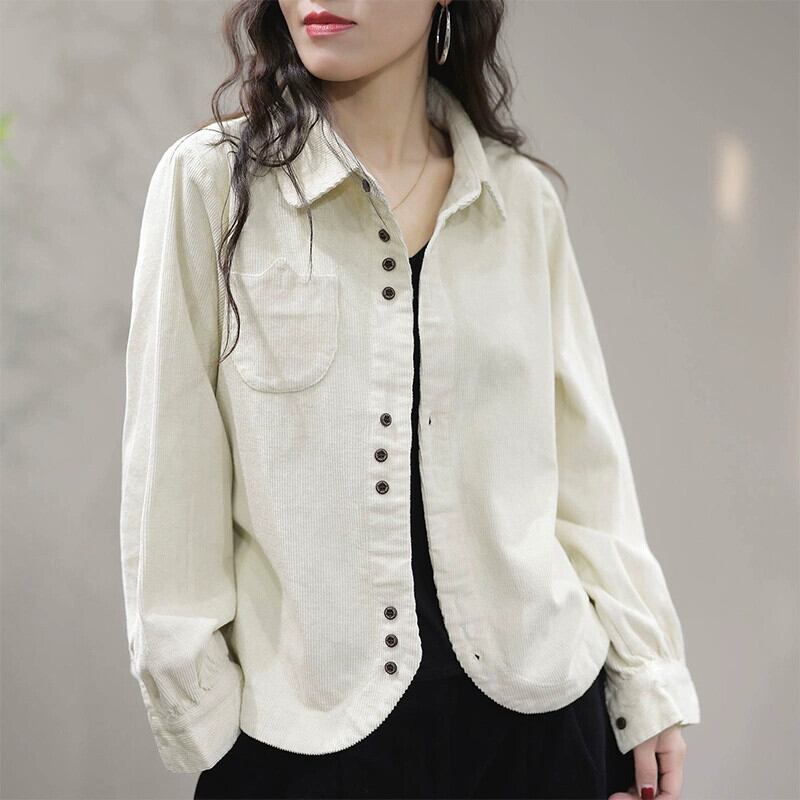 クリアランスリーク〜カウンター最終在庫レディースレトロコーデュロイラペルシャツジャケットルーズコーデュロイ長袖トップ ロング sine51391946300