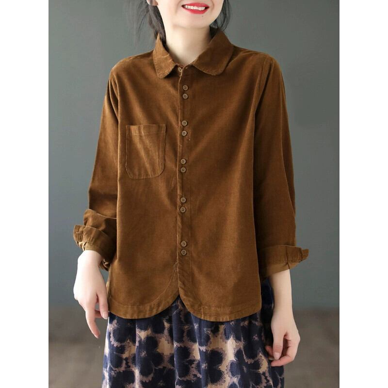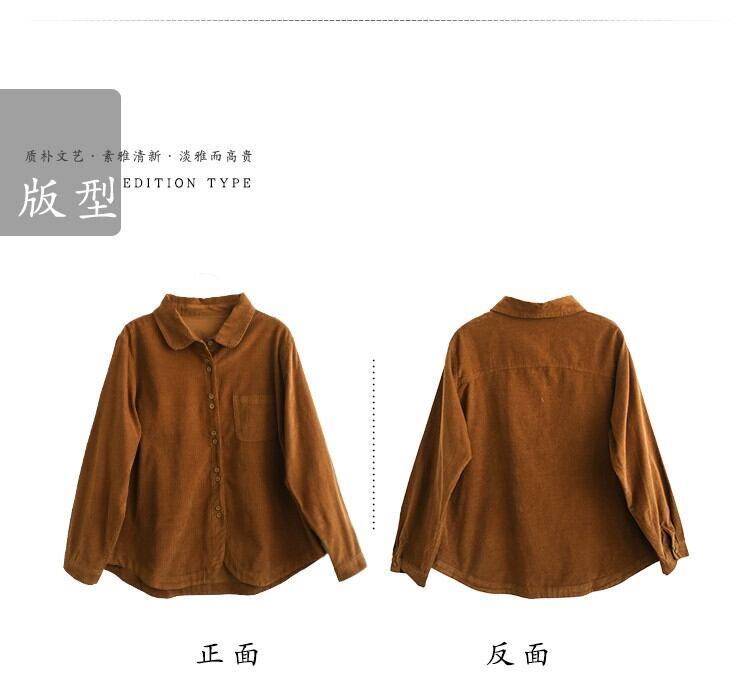 Eign Trade Counter ブランド テール グッズ レディース レトロ コーデュロイ 長袖シャツ ルーズで多用途なラペル コットン カーディガン トップ ロング sine87224537306