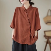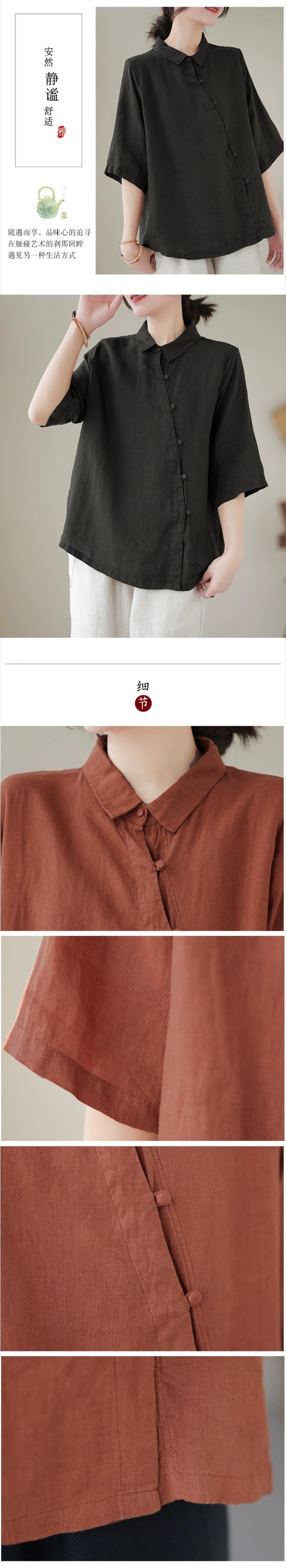 eign trade 割引ブランドテールグッズ女性のレトロな斜めリネンシャツトップ夏のルーズコットンとリネン半袖シャツ サマー 夏物 sine59327464195