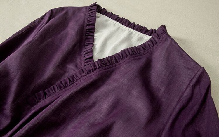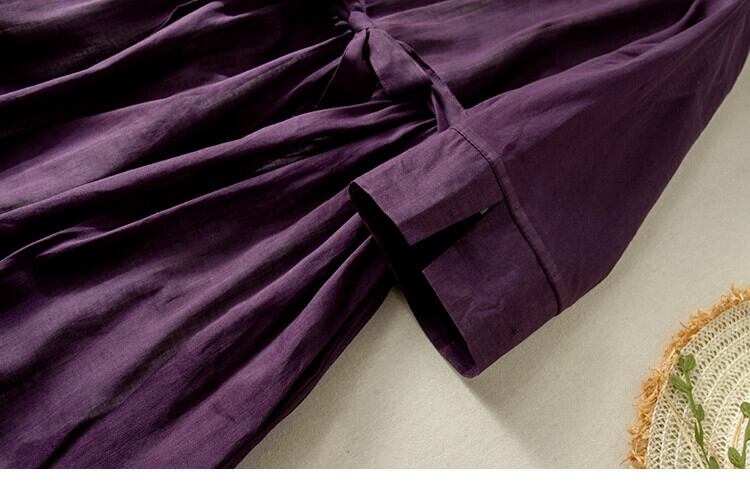 クリアランスリーク〜カウンターの有名な既製のコットンとリネンのパープルのドレスの女性、ルーズなVネックの七分袖ラミースカート sine26656585178
