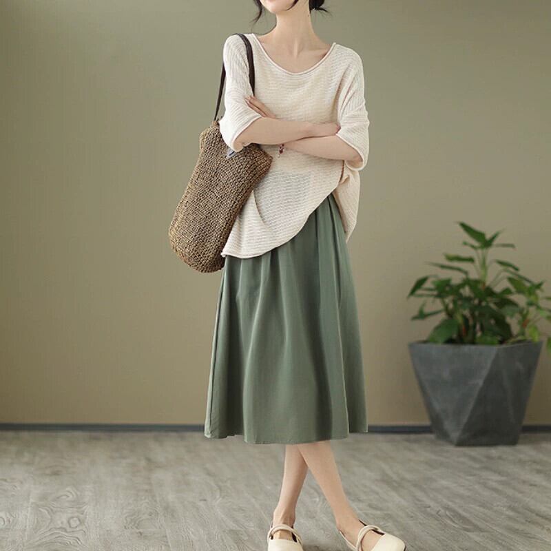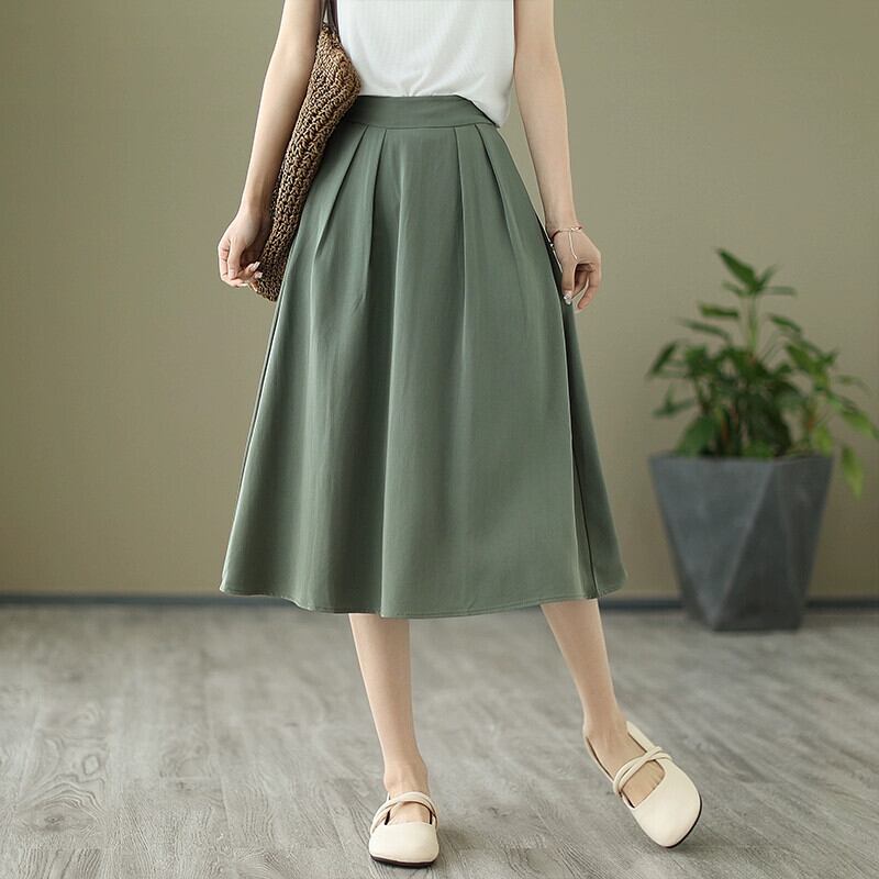 モールの有名な最後の在庫の女性の無地の多目的 A ライン スカート スタイル ハイウエスト プリーツ ミドルレングスのアンブレラ スカート Aライン ソリッドカラー sine20013329652
