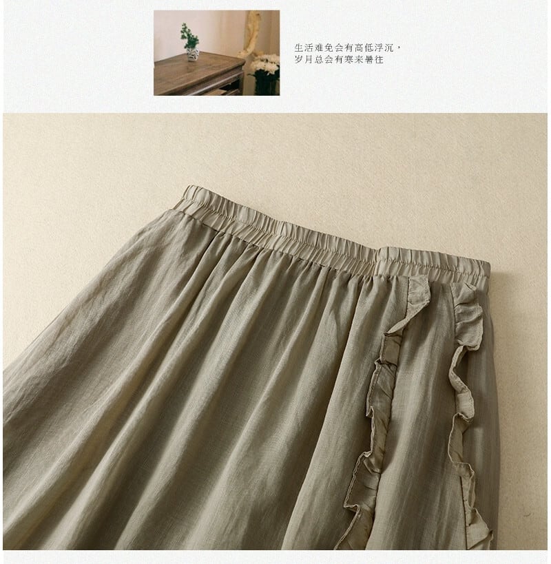 Eign Trade Counter ブランドテールグッズレディース ese リネンスカート夏薄い菌エッジ綿とリネンの大きな裾ミドル丈スカート コットン サマー 夏物 sine7783949944