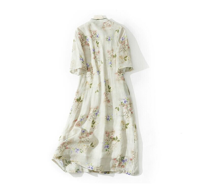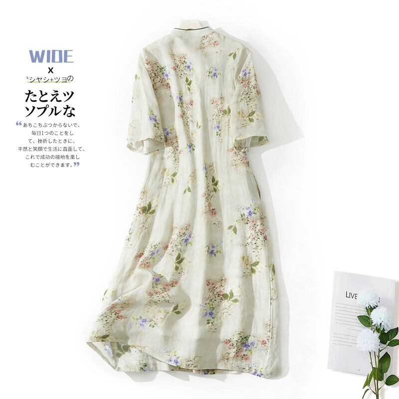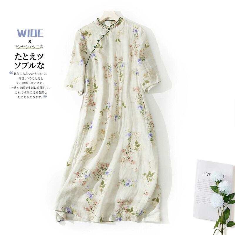 eign trade ese big-name カウンター女性の新しい中国風改善された斜めラペルチャイナドレスルーズプリントラミードレス sine69109831437