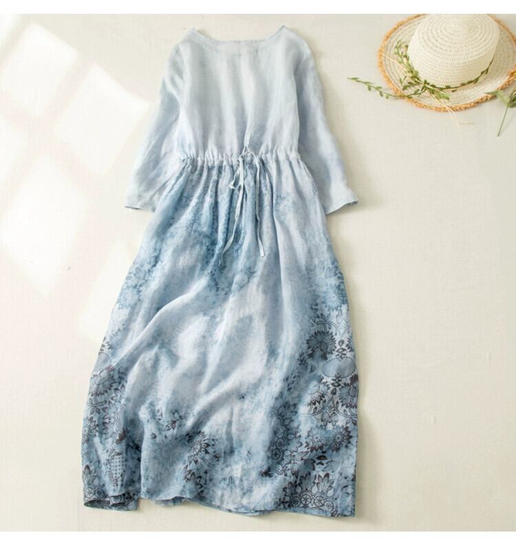 eign trade ese ビッグネーム カウンター グッズ レディース エスト ラミー プリント ドレス ルーズ プリーツ リネン ロング スカート sine7946405643