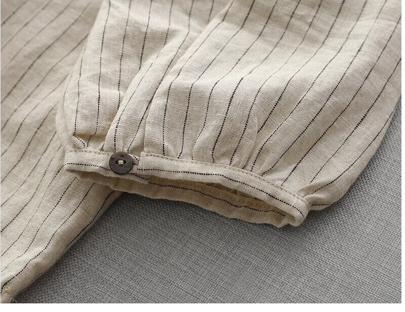 eign trade 割引ブランドテールグッズ ese ストライプリネン半袖シャツレディースルーズカジュアルコットンとリネンドールシャツトップ sine88545471929