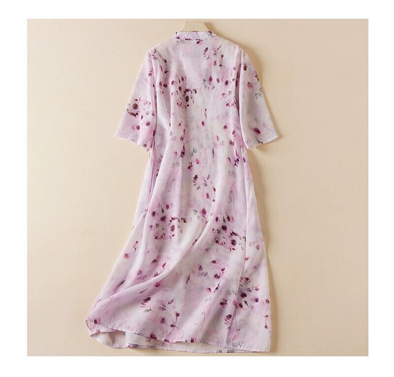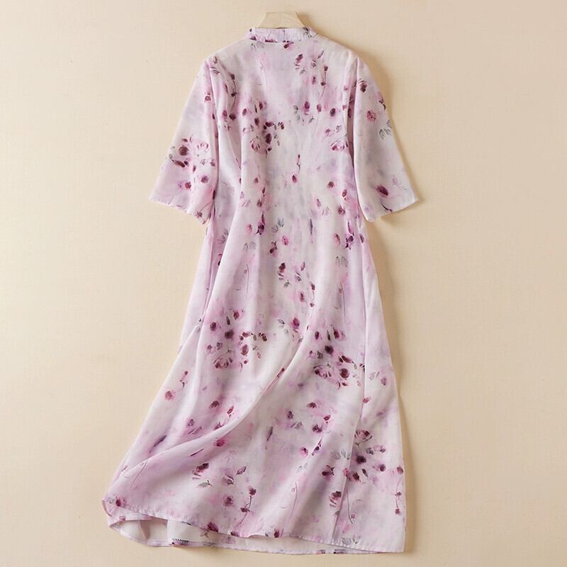 カウンタークリアランス最後の在庫女性の綿とリネン花柄半袖ドレス夏の中国風ラミーチャイナロングドレス コットン サマー 夏物 sine97012402530