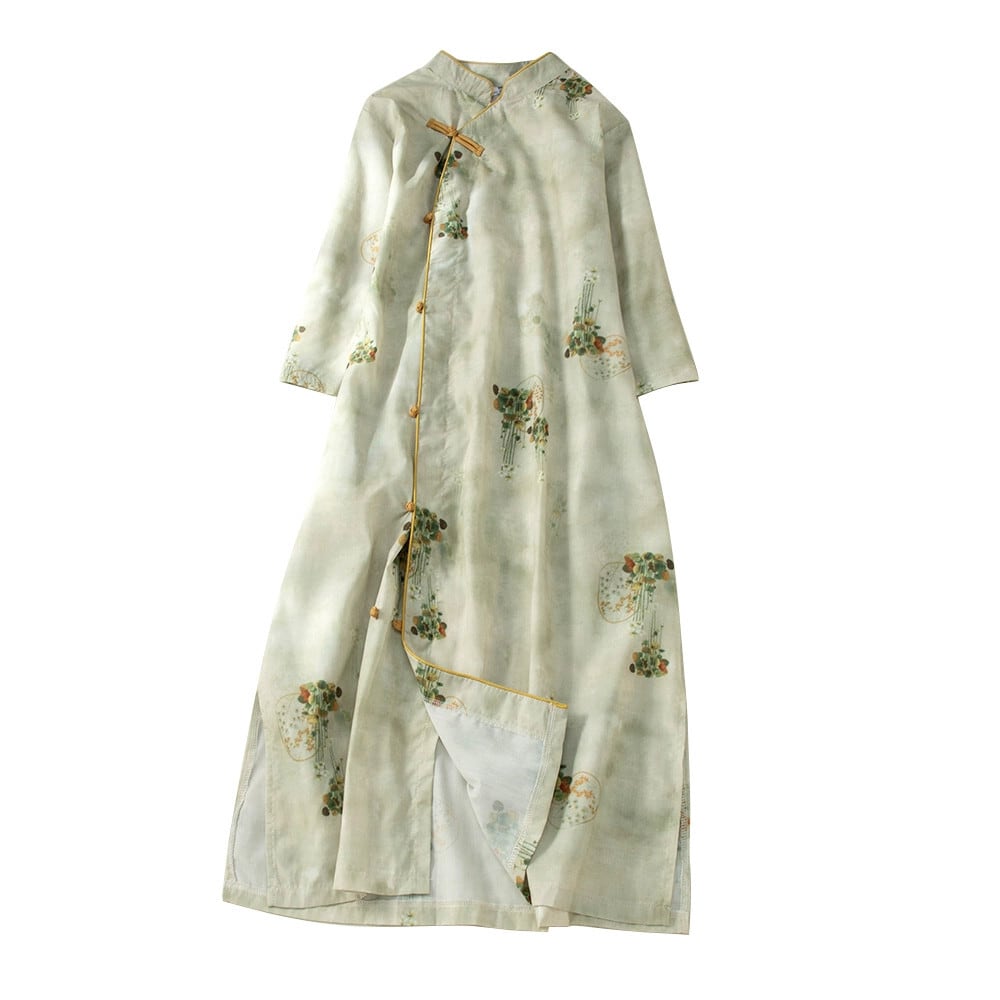 クリアランスカウンター輸出テール商品新しい中国風改良チャイナドレスミドル丈スカート女性のルーズプリントコットンとリネンのドレス sine54664942544