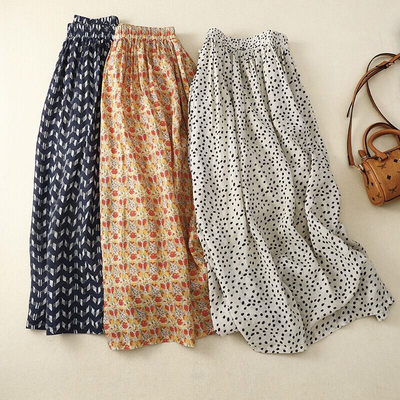 eign trade ese オリジナル シングル ビッグネーム撤退レトロ花柄ラミー スカート ハイウエスト レディース、コットン リネン A ライン スカート ハイウェスト Aライン sine88022847175