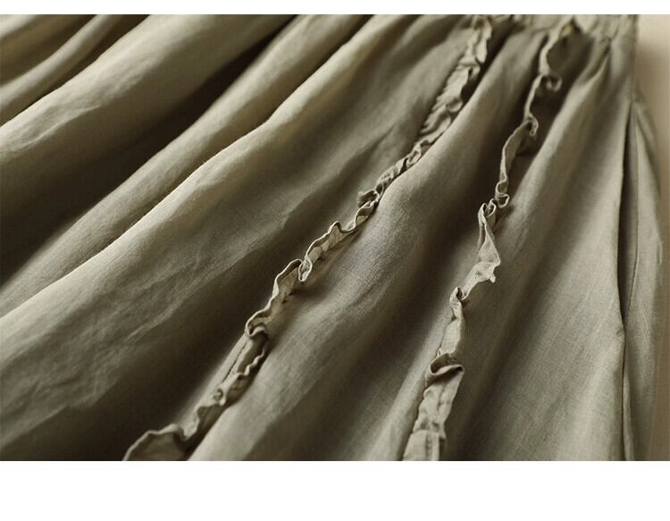 eign trade ese オリジナルハイエンドブランドの女性のレトロラミーフルレングススカートハイウエスト耳裾リネン A ラインスカート Aライン sine74652969107