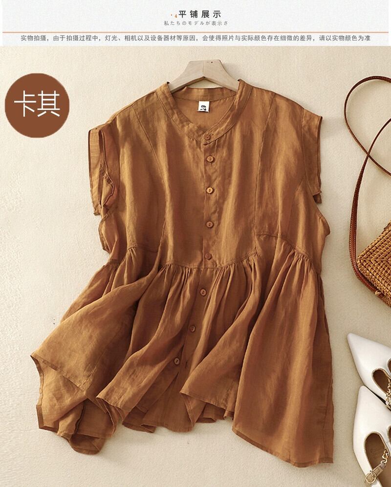 eign trade counter ブランドテールグッズレトロ綿とリネンノースリーブシャツ女性の夏のルーズで軽いリネンチョッキトップ コットン サマー 夏物 sine70188355493