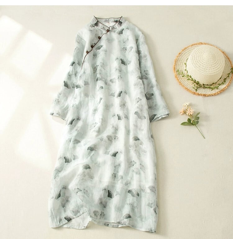 クリアランスカウンター最後の在庫の女性の中国風の斜めラペルラミードレスレトロプリントコットンとリネンのチャイナロングスカート sine86244687794
