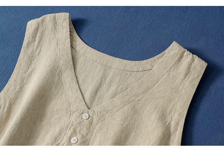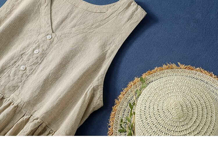 クリアランスリーク〜eseスタイルのオリジナルシングルエストコットンとリネンのベストロングスカートルーズでフルヘムのノースリーブリネンサスペンダードレス sine11777009711