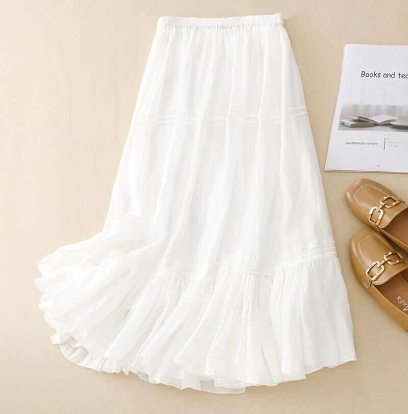 クリアランスカウンター最後の在庫二層ラミーホワイトスカートハイウエストエレガントな妖精の大きな裾のAラインスカート sine55142726771