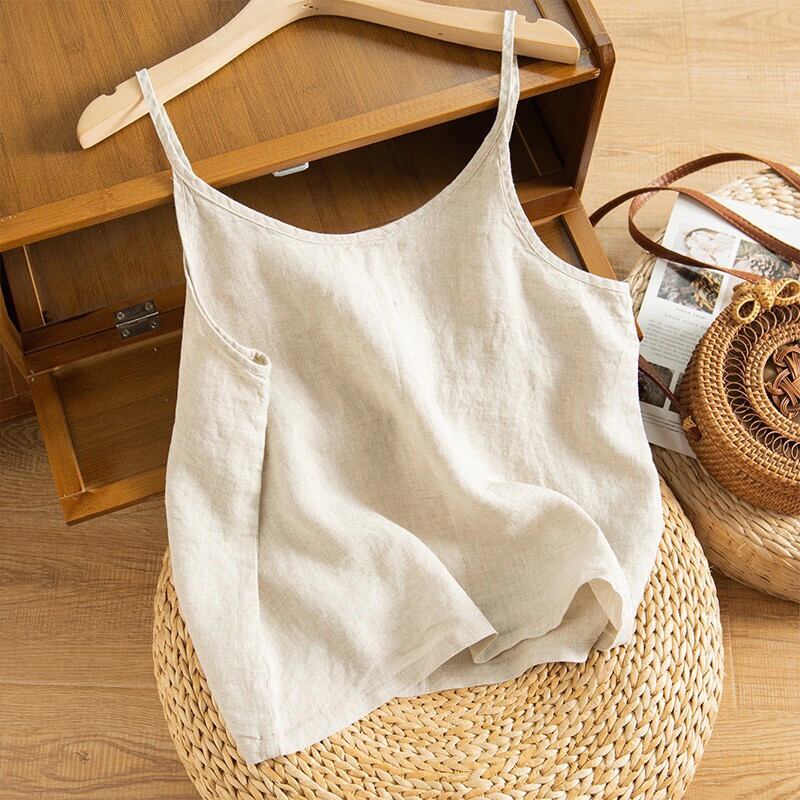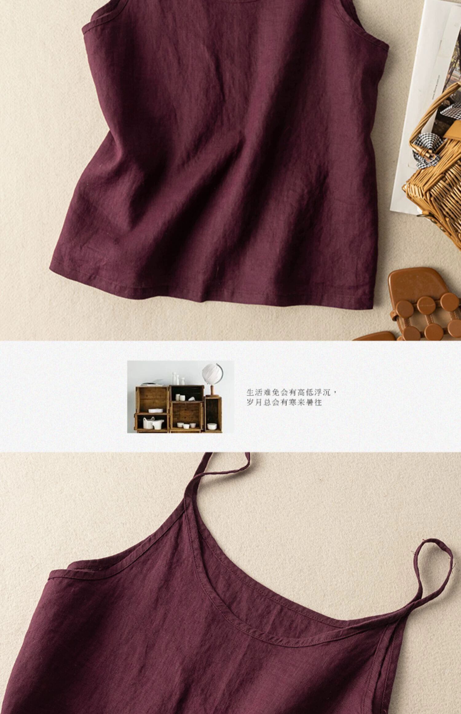 eign trade ese 有名なカウンターエンド商品レトロ綿とリネンの小さなキャミソール女性無地インナーリネンノースリーブトップ コットン ソリッドカラー sine53102617373