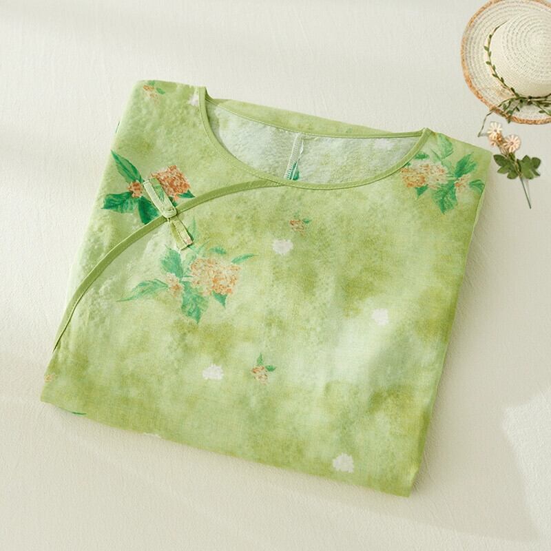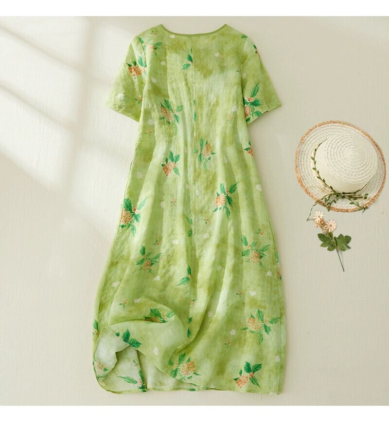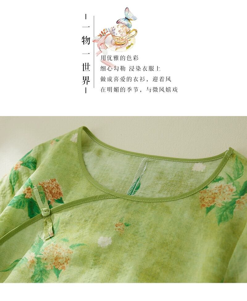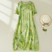 第一線のブランド eign trade 最後の在庫の女性の中国風斜めラペル綿とリネンのチャイナ ドレス プリント ラミー半袖ドレス コットン sine95458337255