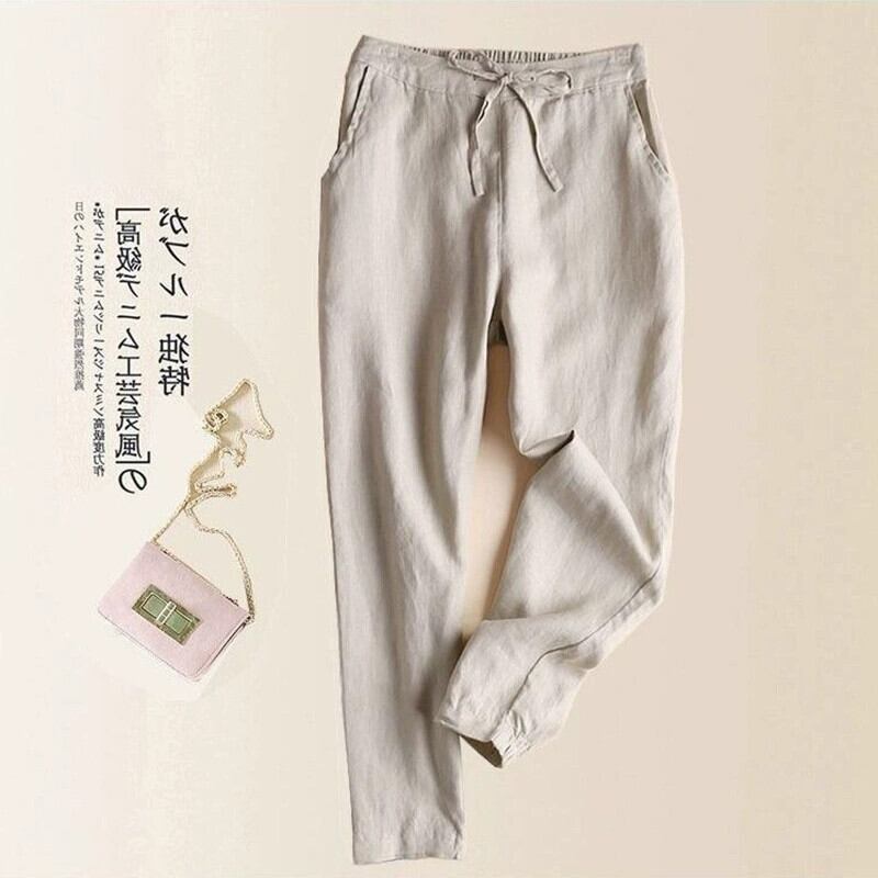 ディスカウントストアショッピングモール撤退レトロ綿とリネン9点カジュアルパンツ女性ルーズハイウエストリネン大根ハーレムパンツ コットン sine31355894013