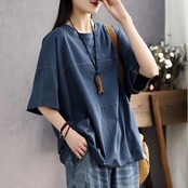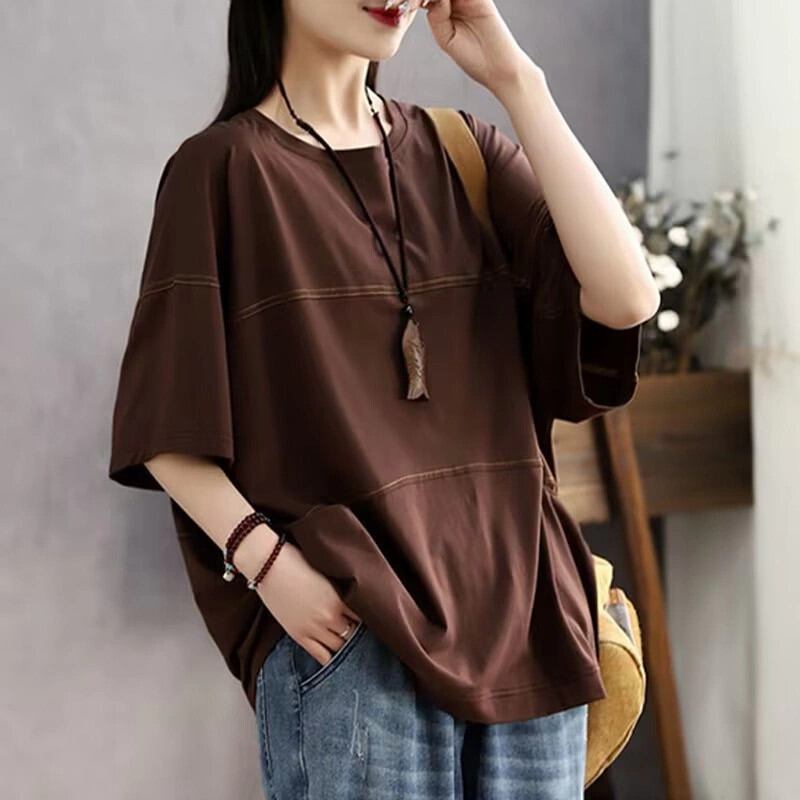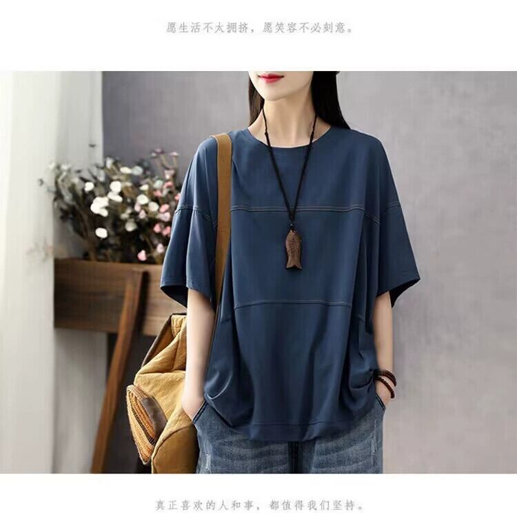 第一線ブランド eign trade 撤退最終在庫スプライシング多用途純綿半袖 T シャツレディースルーズカジュアルラウンドネックトップ薄手 コットン Oネック Tシャツ ピュア sine55016550540