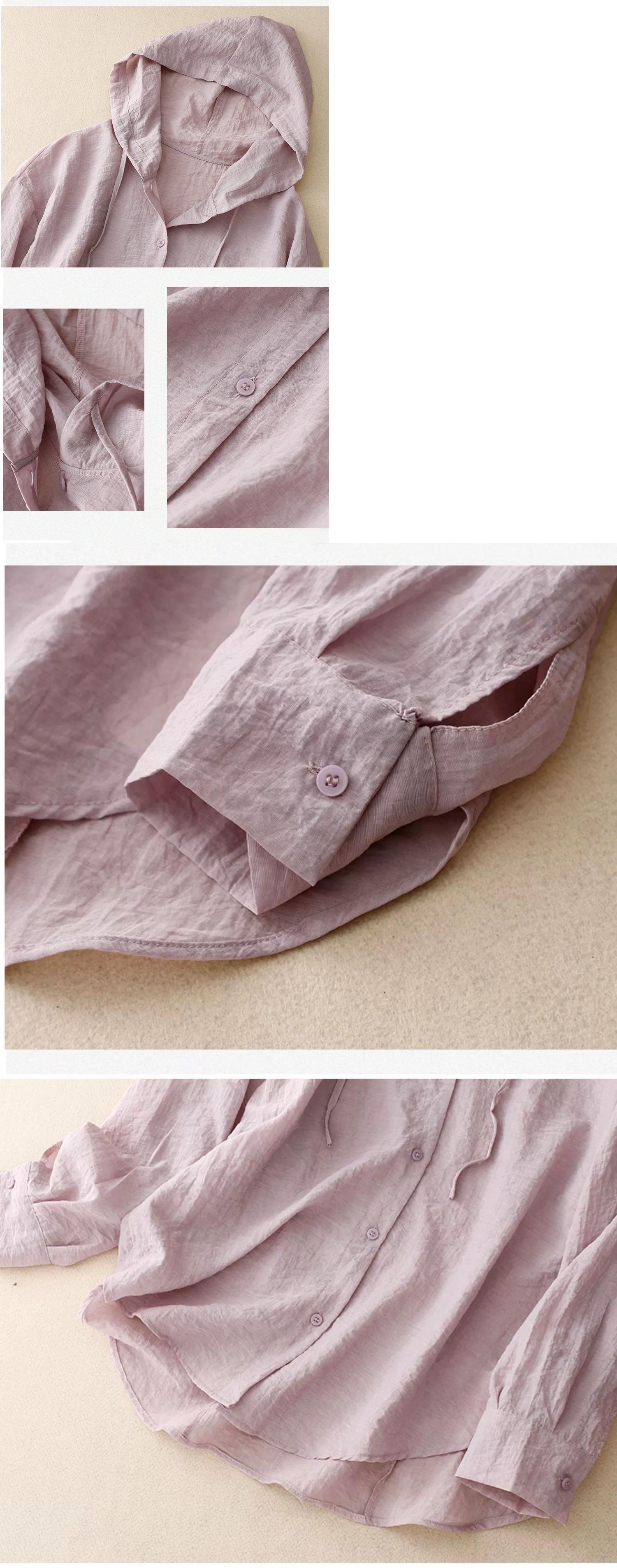 クリアランス漏れ ~ カウンター最後の在庫夏軽量綿とリネン日焼け防止服女性ルーズリネンフード付き空調シャツトップ コットン サマー 夏物 sine42262728091