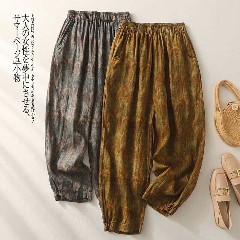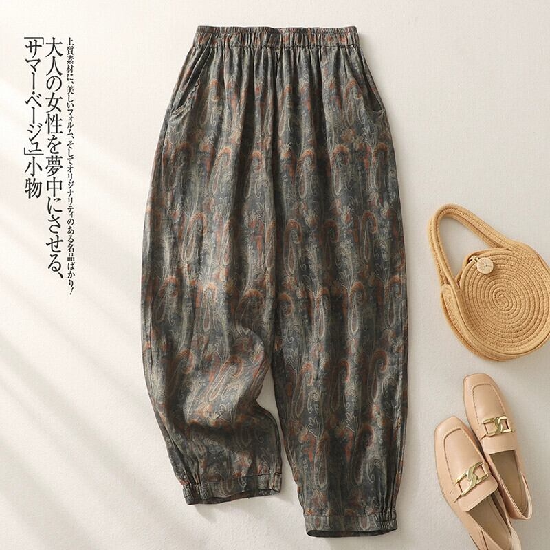 クリアランス漏れ〜カウンタービッグネーム牛プリントラミーレギンスハーレムパンツ女性ハイウエストカジュアルコットンとリネンの9点パンツ sine66570304092