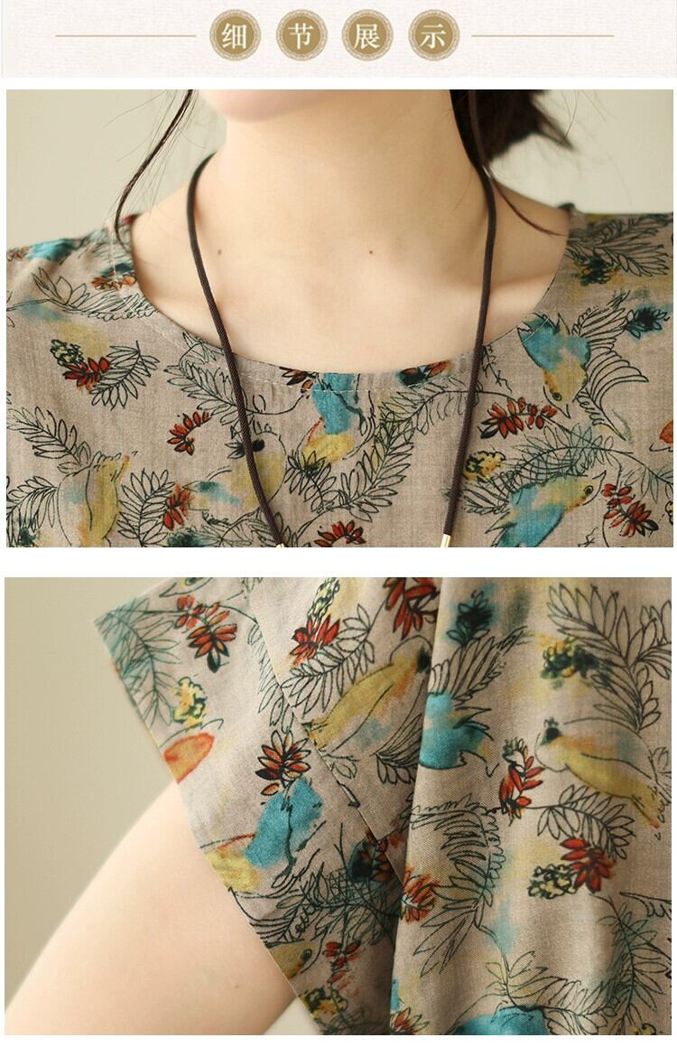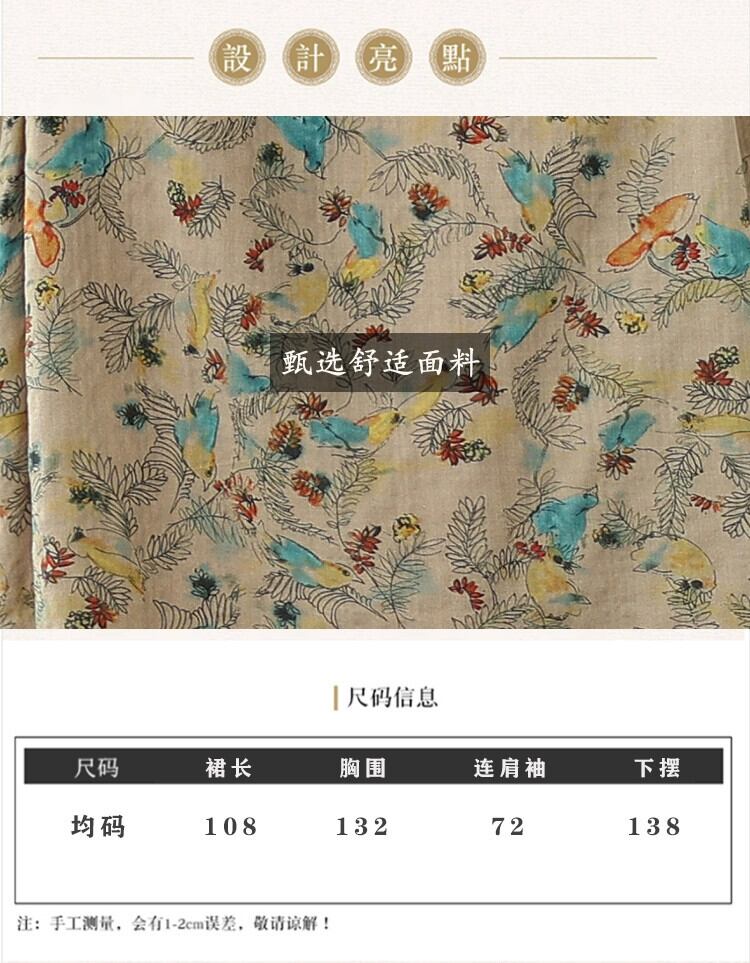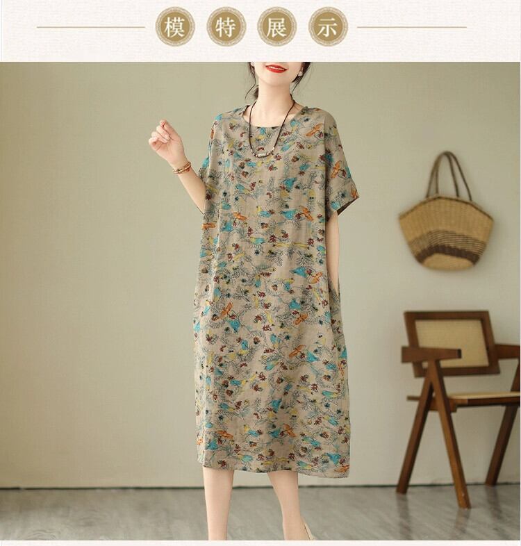 Eign Trade Export Big Tail Goods レディース クリアランス レトロ 花柄 リネン ドレス ルーズ 大きいサイズ コットンとリネン 膝上ロングスカート 大きめサイズ sine90091558533