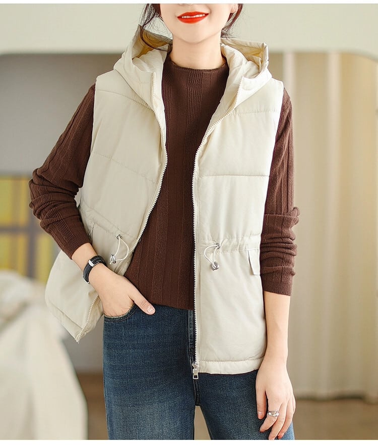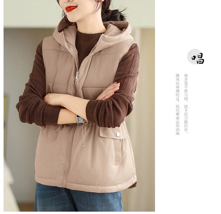 Eign Trade Counter ブランド テールグッズ 軽量ダウンジャケット ベスト レディース キルティング ウエストデザイン ノースリーブ フード付きジャケット sine20819956772