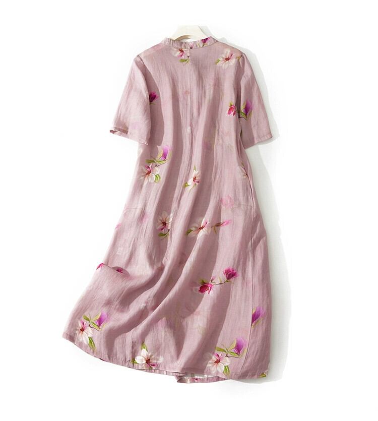 クリアランスブランド牛グッズカウンター最後の在庫中国風の改良された綿とリネンのチャイナドレス女性のルーズプリントラミードレス コットン sine54549098521