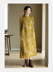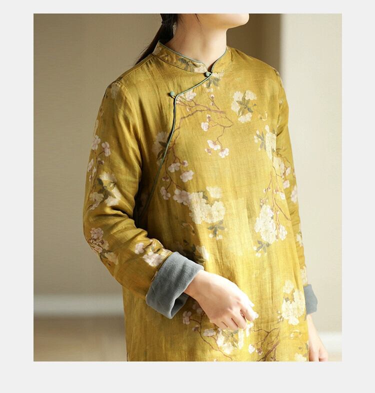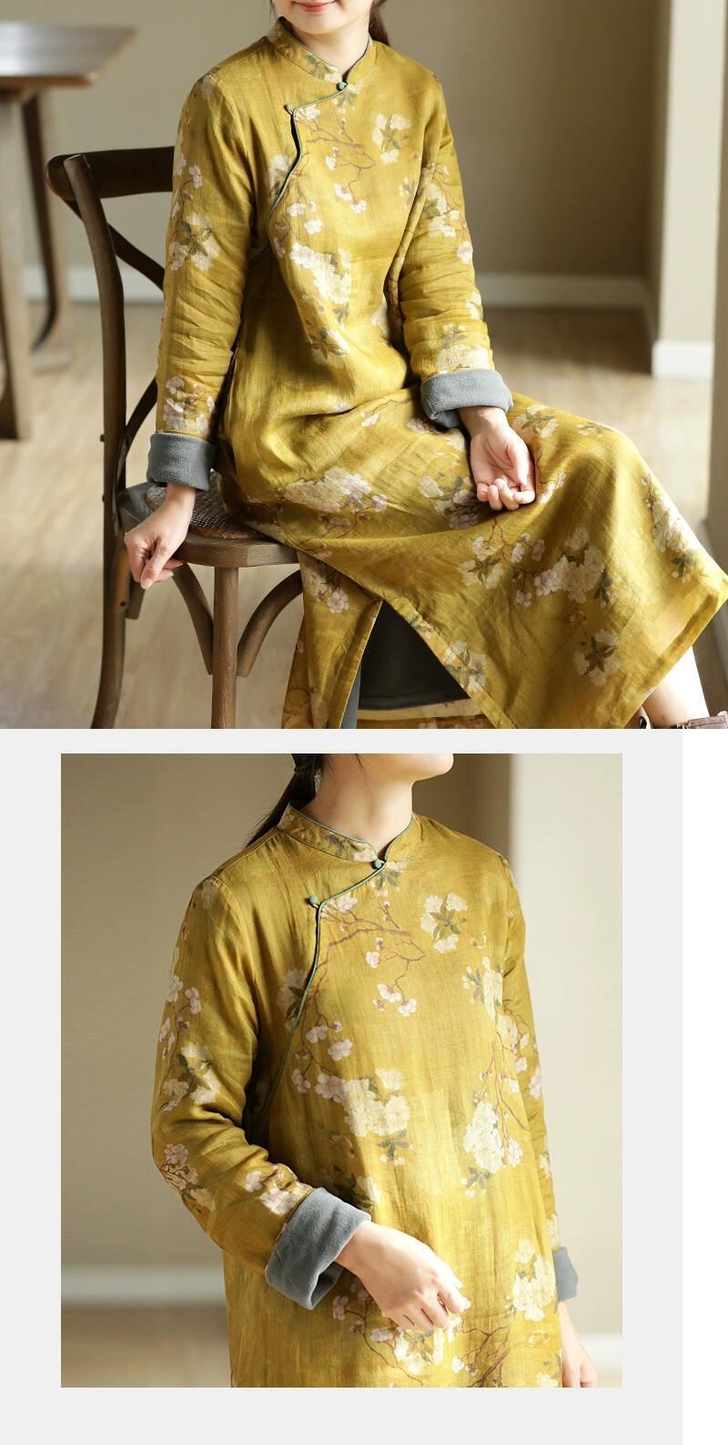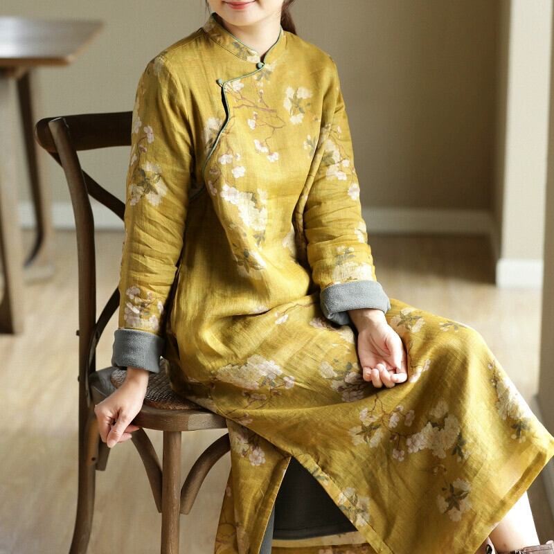 クリアランスクリアランスカウンター牛商品除去中国風の綿とリネンのチャイナドレスとベルベットと厚みのある長袖ドレスの女性 ロング コットン sine23741939967