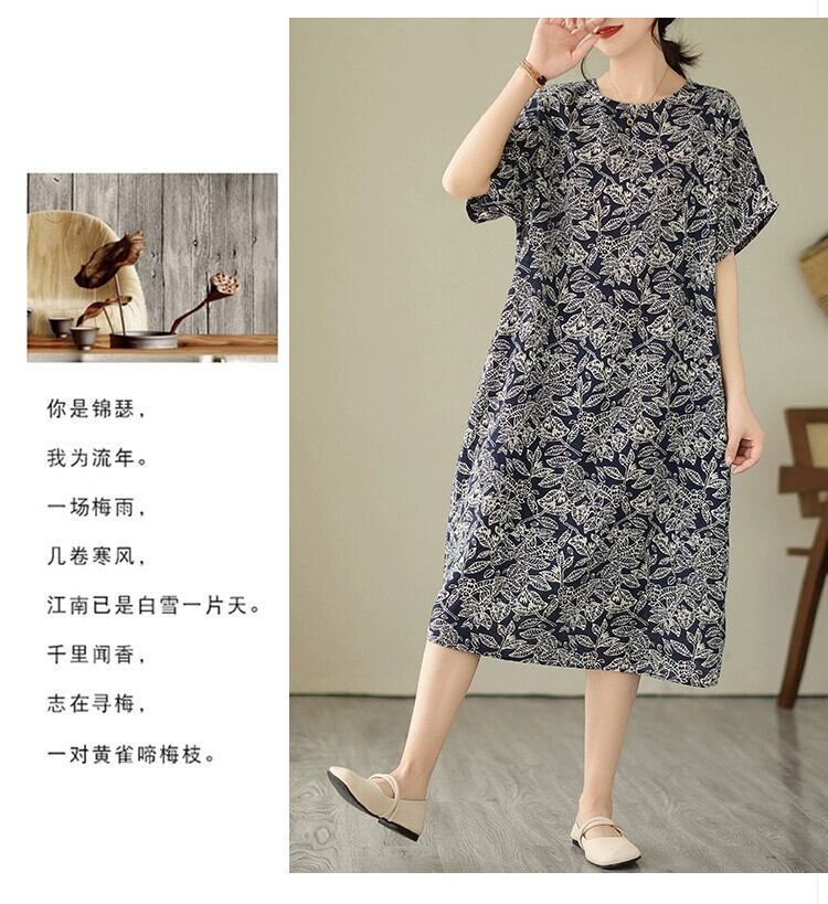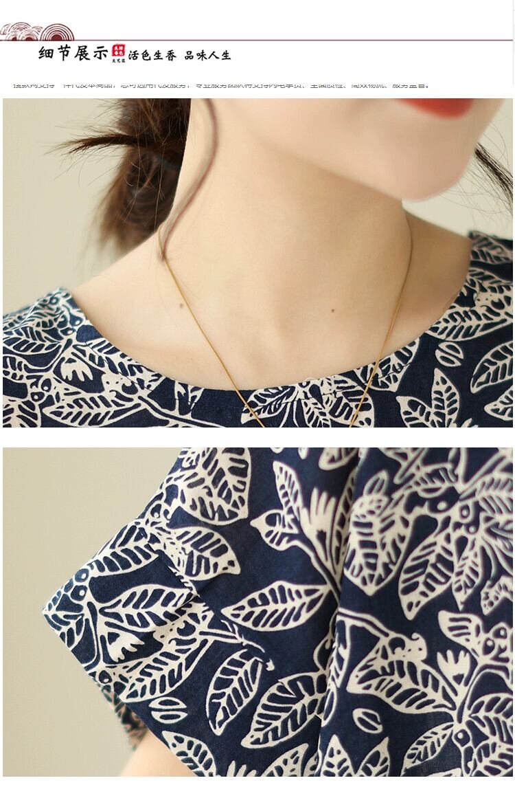 クリアランスブランド牛グッズカウンター最終在庫レディースエスニックスタイルプリントコットンとリネンローブルーズリネン半袖ドレス sine71807294561