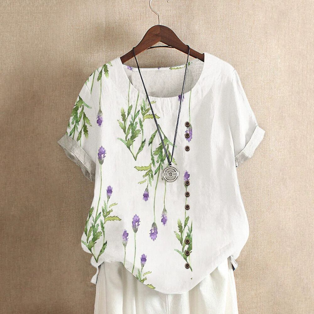 Eign Trade 割引ブランド テール グッズ レディース リネン プリント半袖シャツ トップス ルーズ コットンとリネン ラウンドネック Tシャツ Oネック sine88646419806