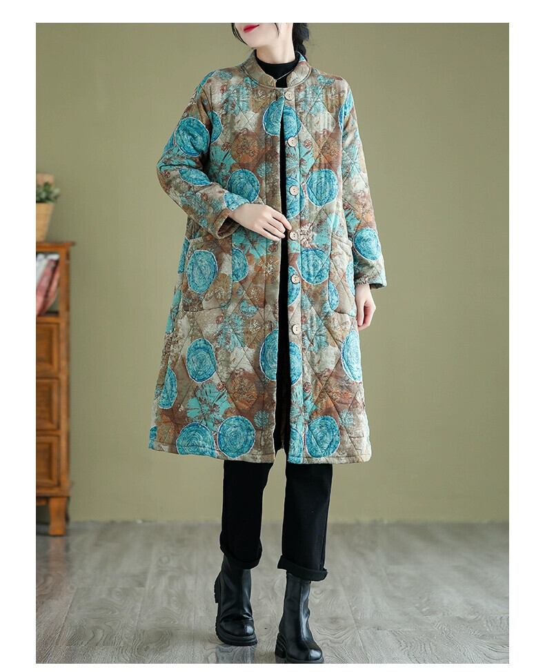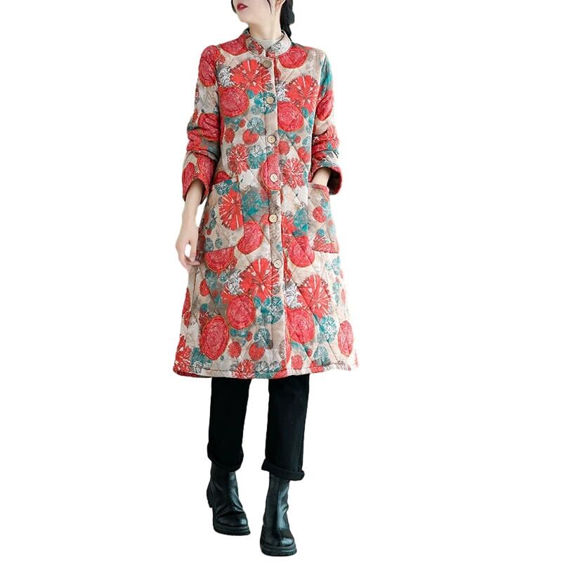 Eign Trade Export Tail Goods エスニックスタイルプリントキルティングジャケット女性厚くて暖かいミッドレングスのコットンコート冬 ウィンター 冬物 sine31880445146