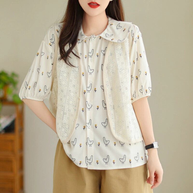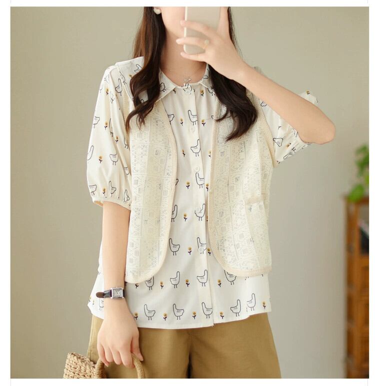 第一線ブランド eign trade 撤退最終在庫年齢削減プリント半袖シャツ女性ニッチシックベストベストトップ sine72162383480
