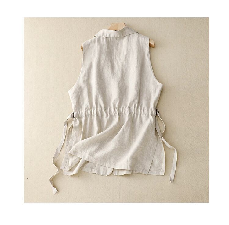 eign trade ese オリジナルハイエンドブランドリネンチョッキトップ女性のルーズノースリーブスーツ襟綿とリネンシャツ コットン sine51186624668