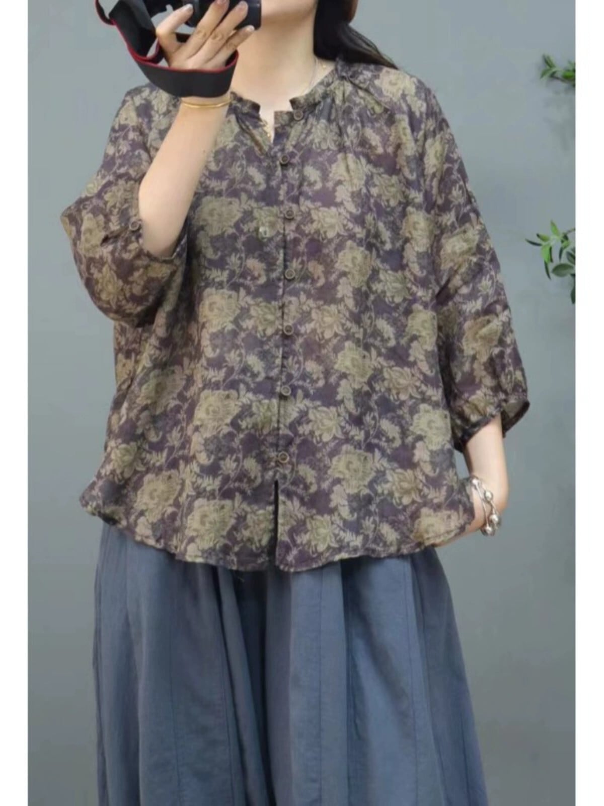 eign trade 割引ブランドテールグッズレトロ花柄コットンとリネントップスレディースルーズでライトリネンの七分袖シャツ sine81807301587
