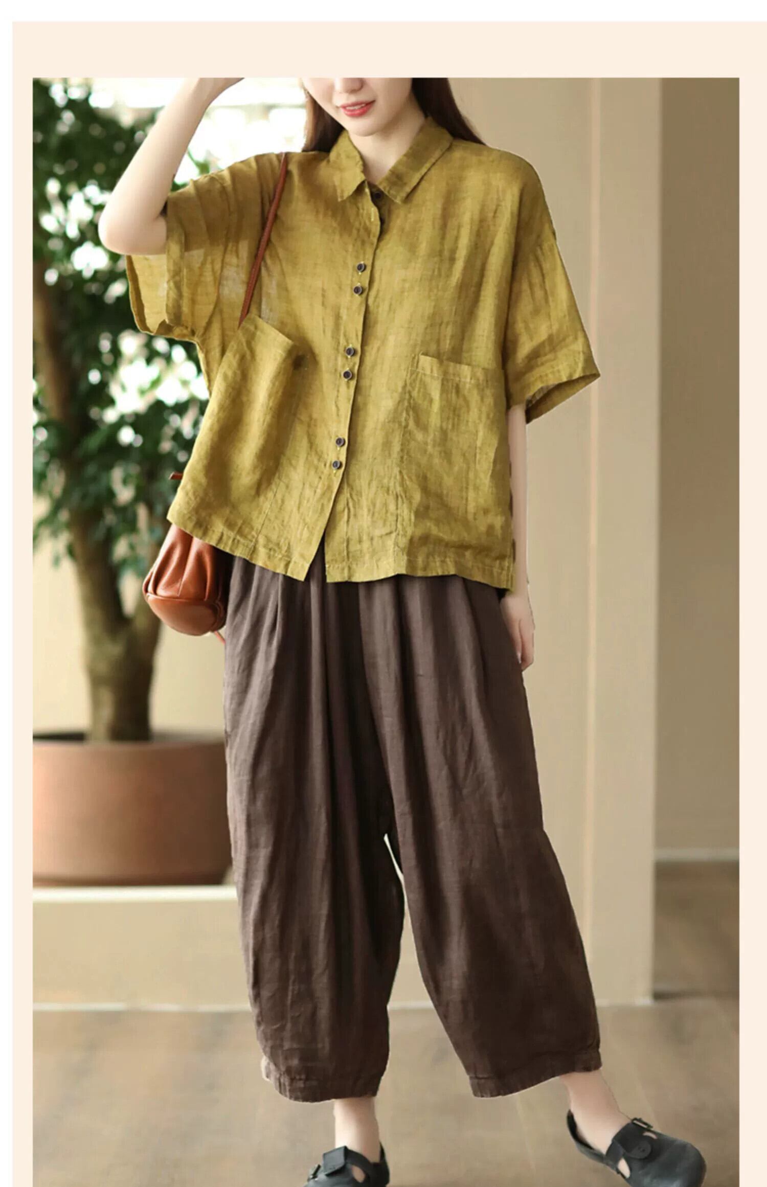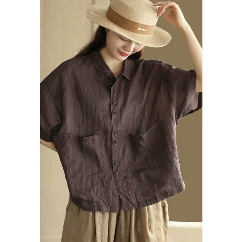 永貿易輸出ビッグブランドテールグッズ撤退レトロ綿とリネン半袖シャツ女性のゆったりとした軽いリネンシングルブレストトップ コットン sine76287395150
