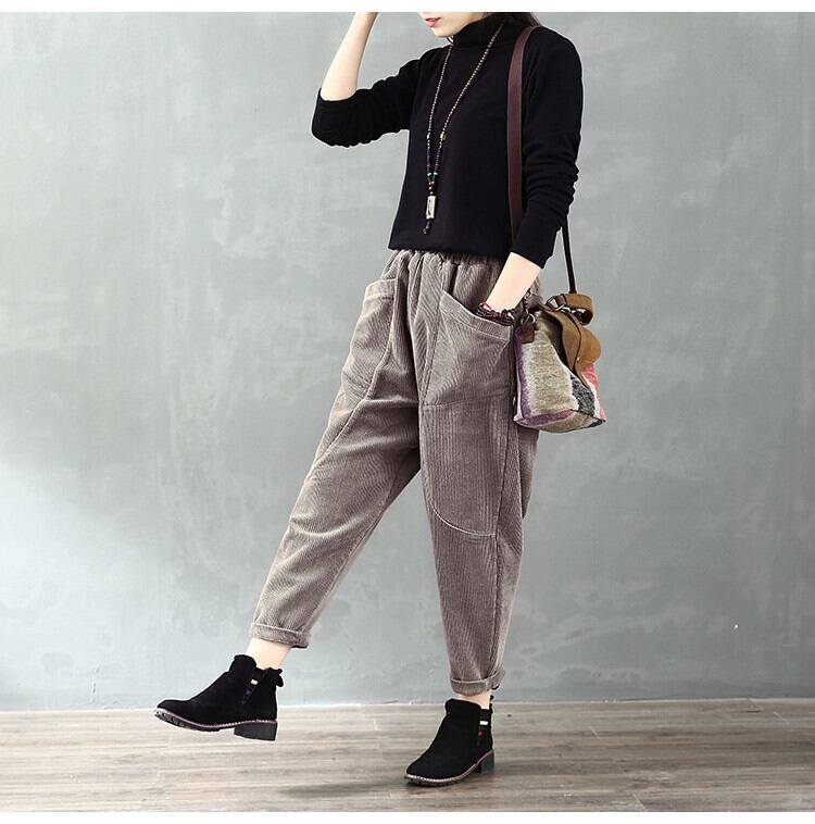 ディスカウントストアショッピングモール撤退レトロコーデュロイハーレムパンツ女性のハイウエストスリムビッグポケットコーデュロイキャロットパンツ ハイウェスト sine5708083613