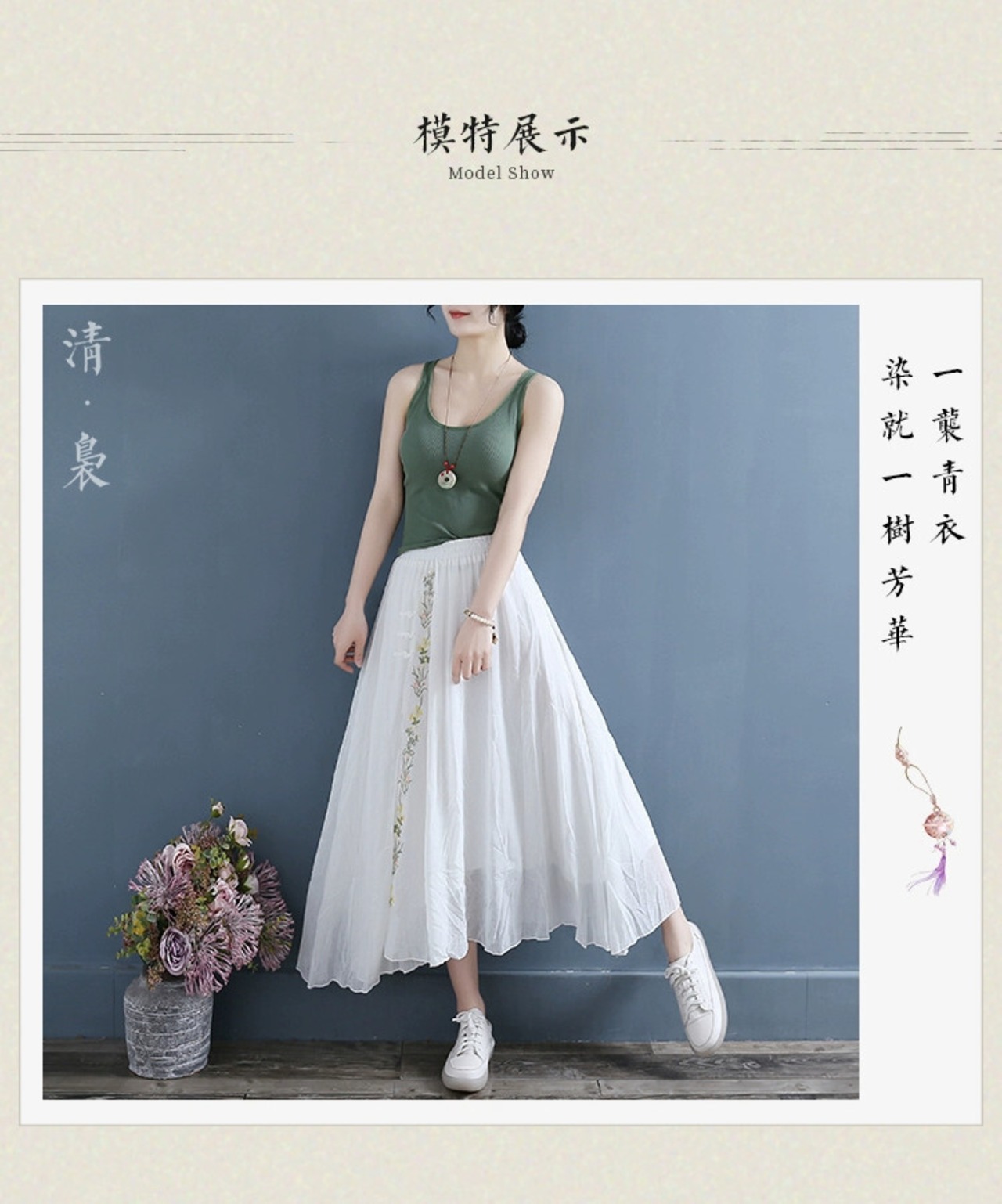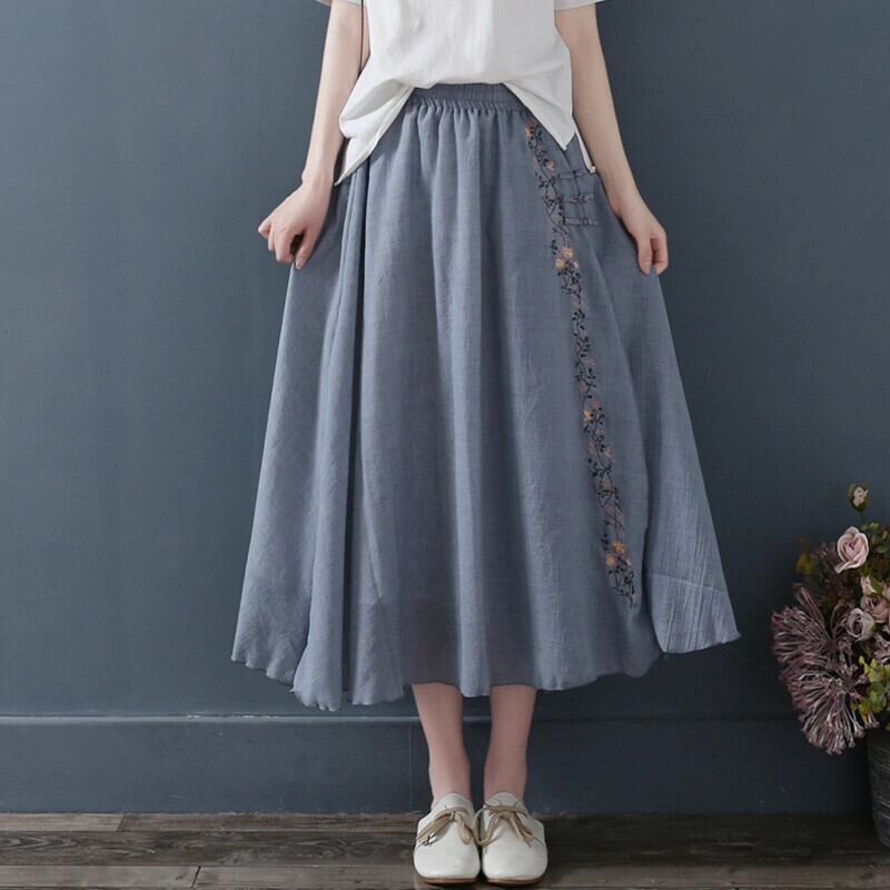 永貿易輸出ビッグブランド尾品撤退女性のレトロな刺繍ラミースカート弾性ウエスト綿とリネンのエレガントな大きな裾スカート レッド コットン エラスティック 伸縮 sine43095691511