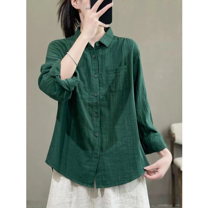クリアランス漏れ〜カウンタービッグネーム牛二重層綿糸シャツレディース、レトロな無地多用途リネン長袖トップ ロング コットン ソリッドカラー sine66182048514